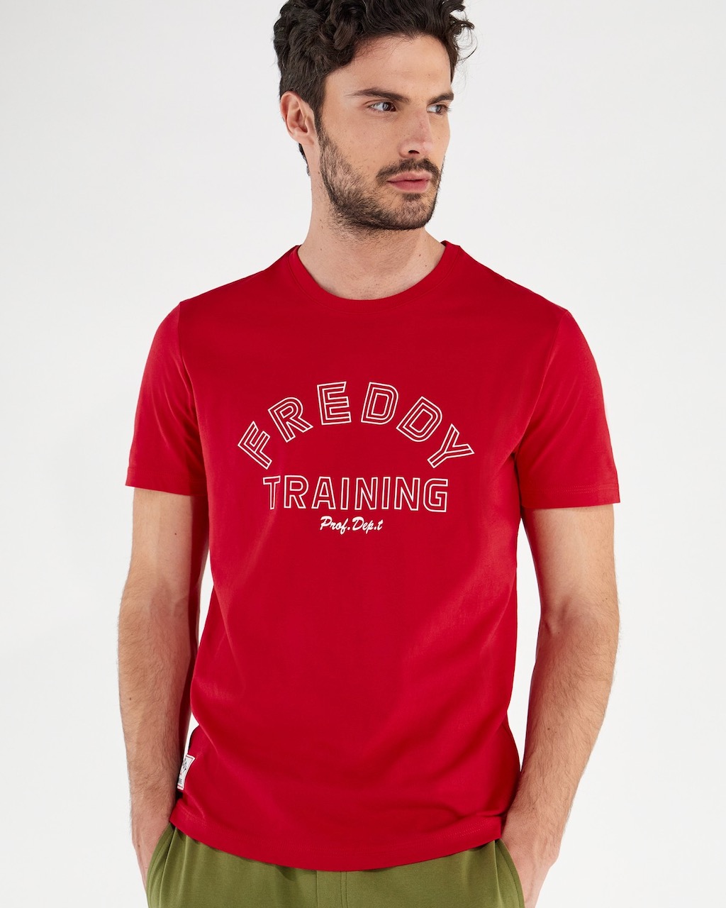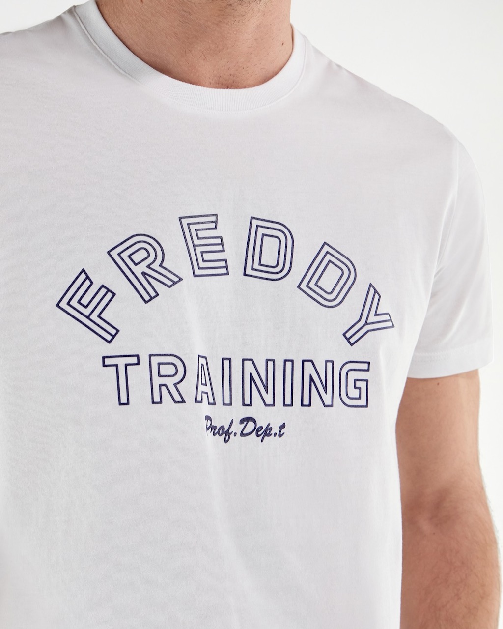 アウトラインロゴでフロントにFREDDYTRAININGが施された軽量のコットンジャージーTシャツ。